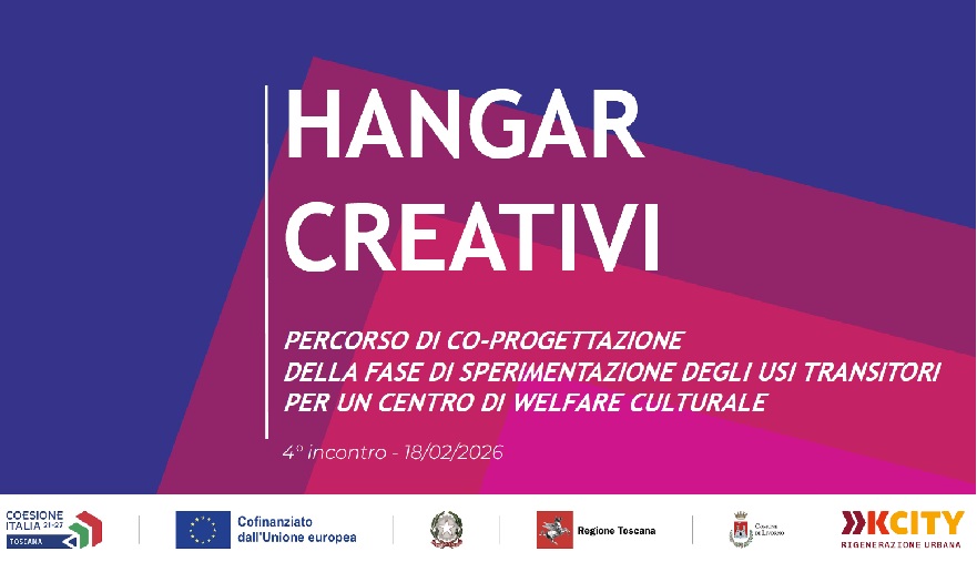 Il 18 febbraio 2026 si è svolto online su piattaforma Microsoft Teams il 4° Tavolo di co-progettazione dedicato alla sperimentazione degli usi transitori degli Hangar Creativi come Centro di welfare culturale, incontro conclusivo del percorso avviato con i Tavoli precedenti e finalizzato a presentare e discutere il Piano di Sperimentazione definitivo predisposto dall’Amministrazione.